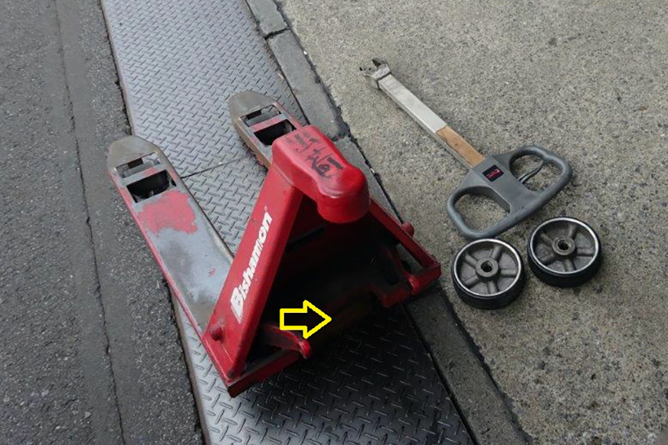 - ハンドリフトが上がらなくなり、荷物を持ち上げられない